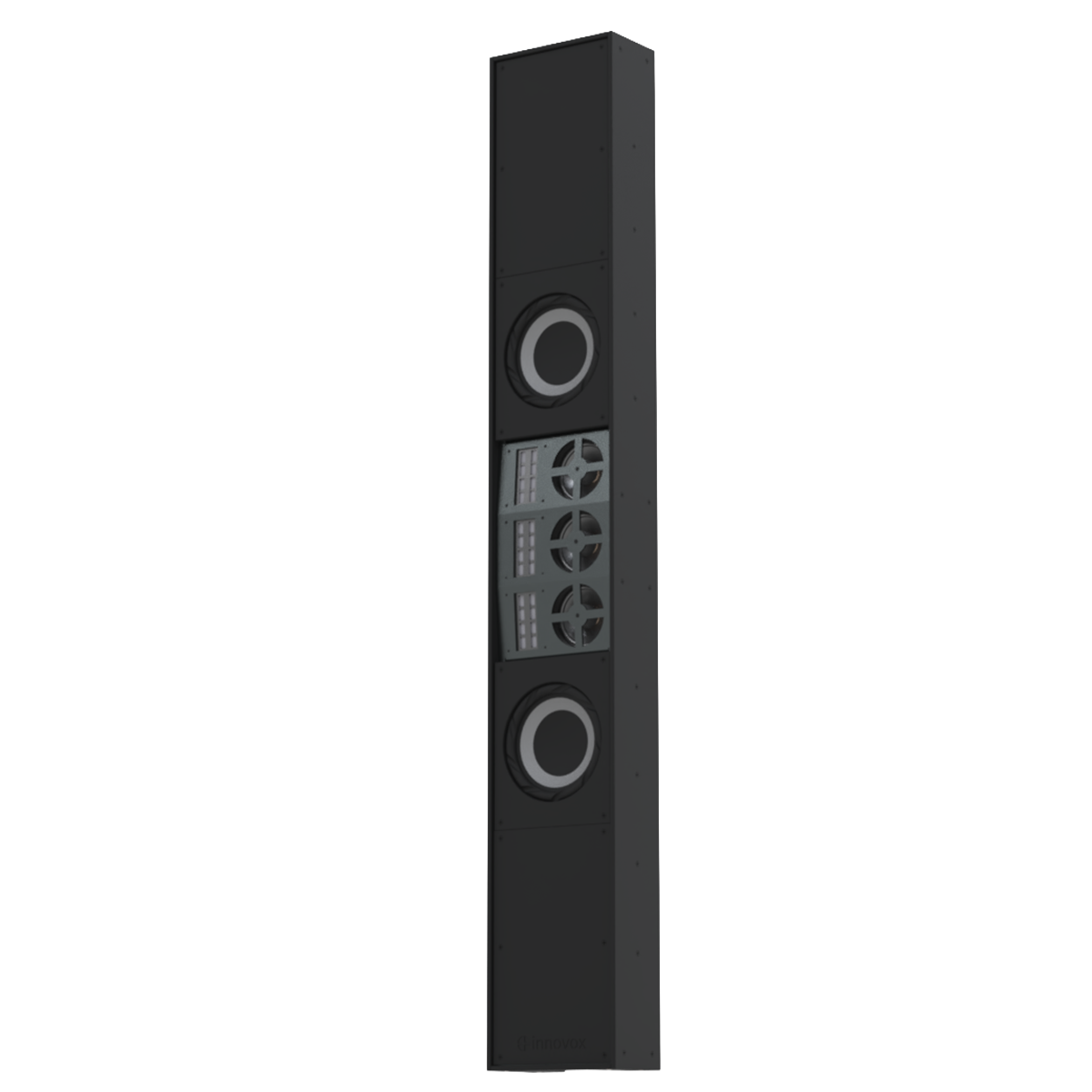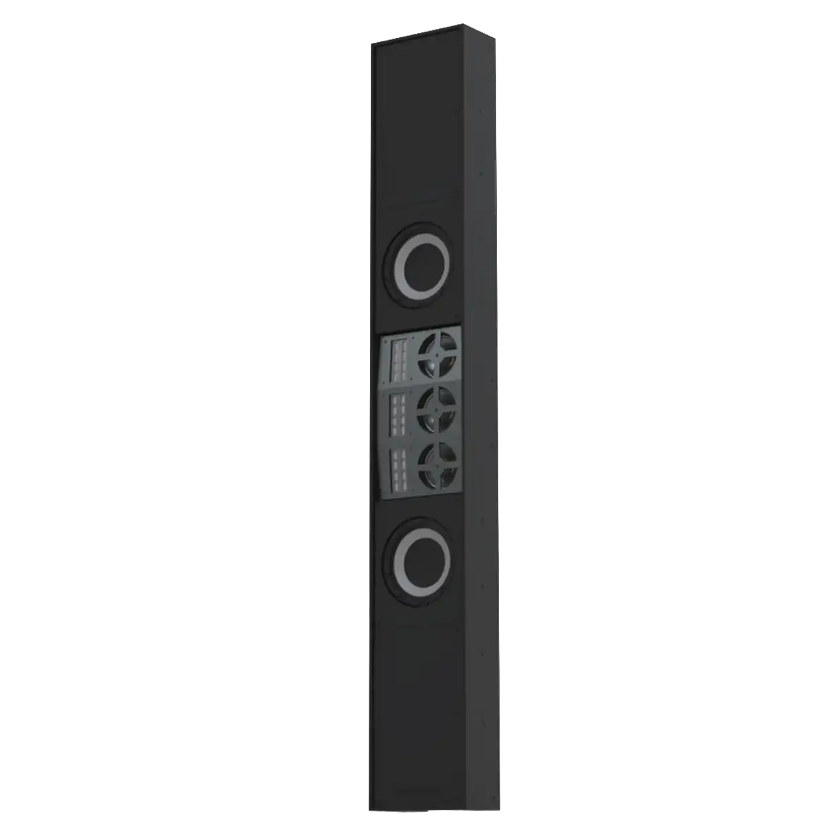 FlexArray 1 is a loudspeaker system designed to support video walls and large LED displays. They employ a combination of a curved line array with a dipole low frequency steering module, and a sophisticated powered DSP by PowerSoft. This unique powered hybrid achieves the precise vertical control and uniform back of room coverage that is essential for high speech intelligibility in longer reverberant spaces. Each FlexArray 1 system is dimension matched and factory configured for your project based on construction documents or contractor supplied field measurements in order to optimize its performance in your room. The FlexArray 1 modules are configurable based on the required coverage pattern and acoustical center of the speaker.