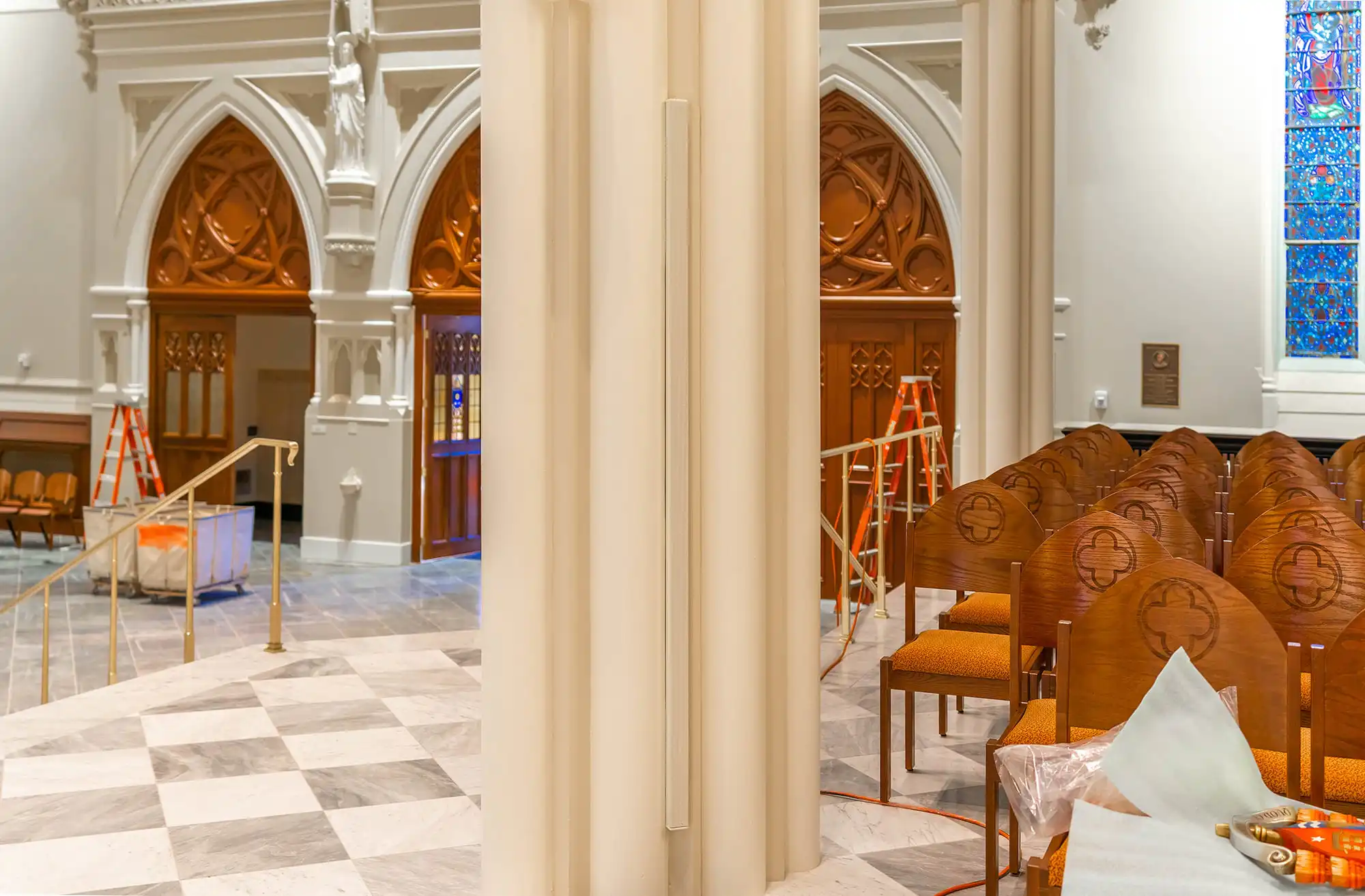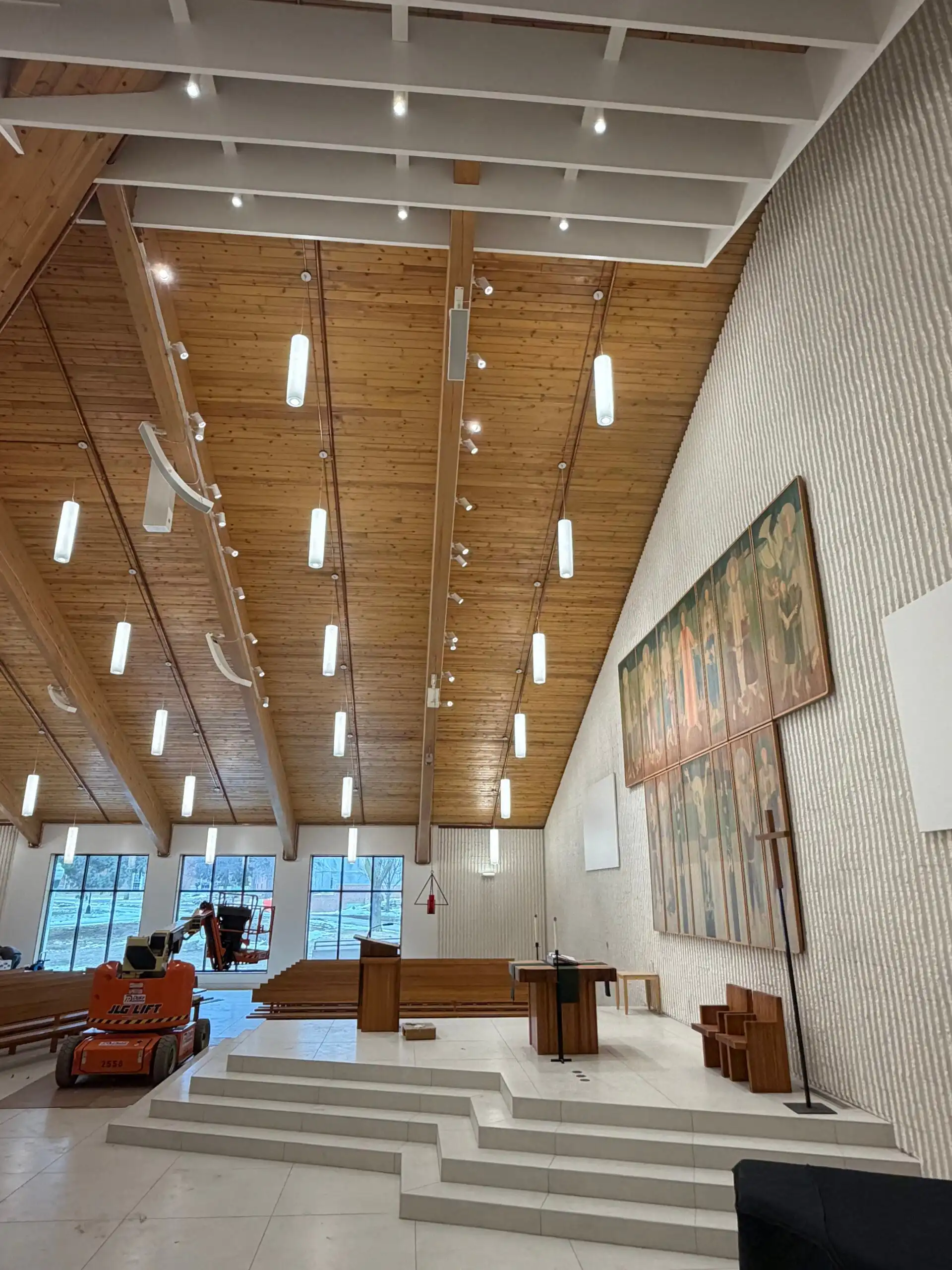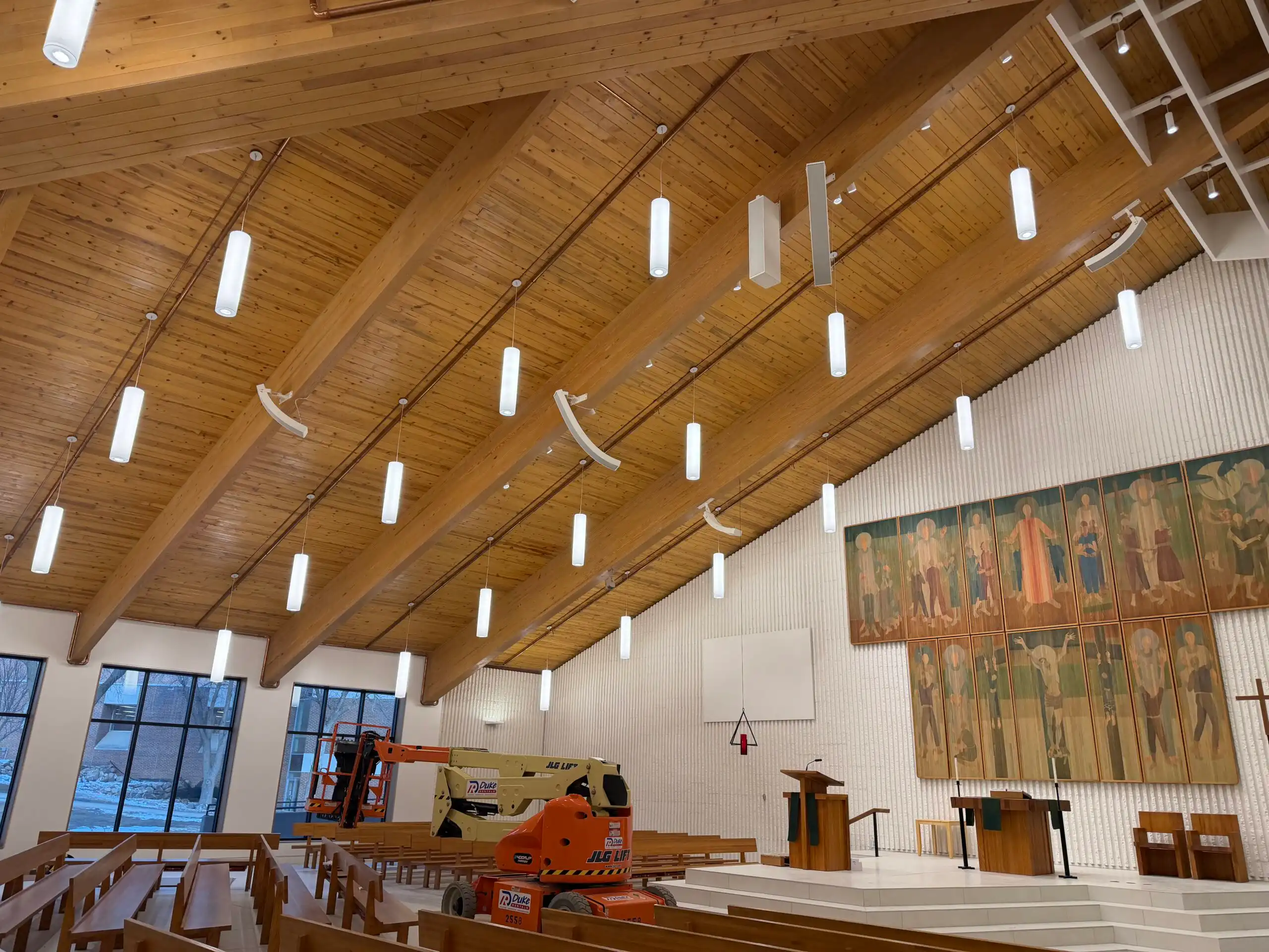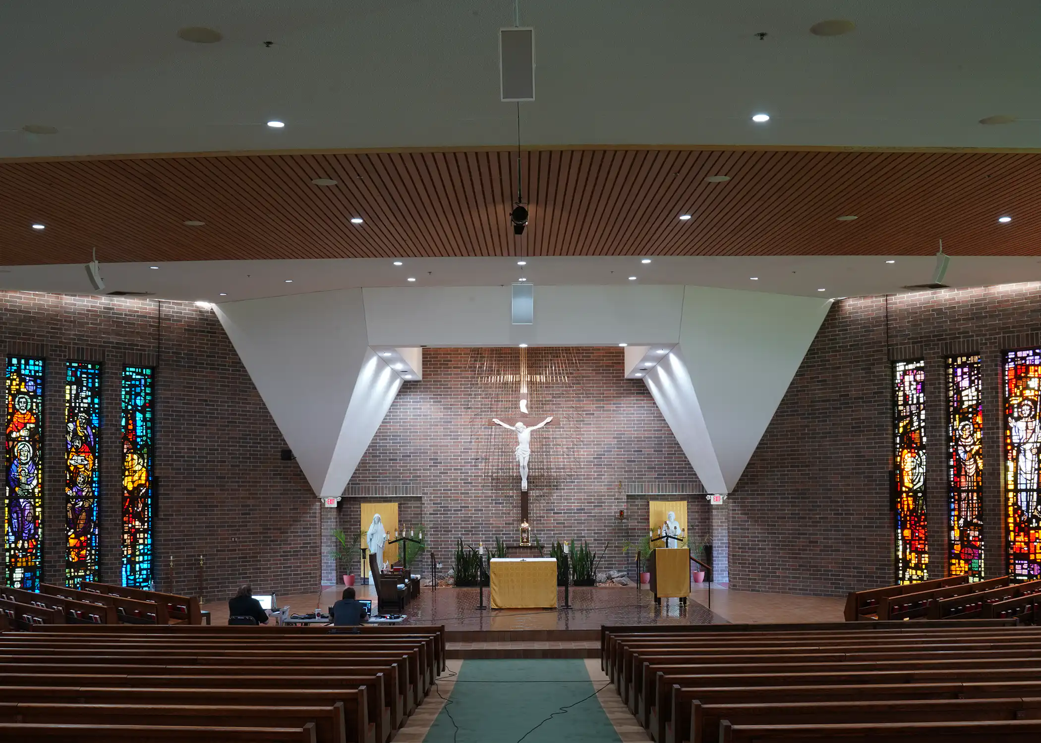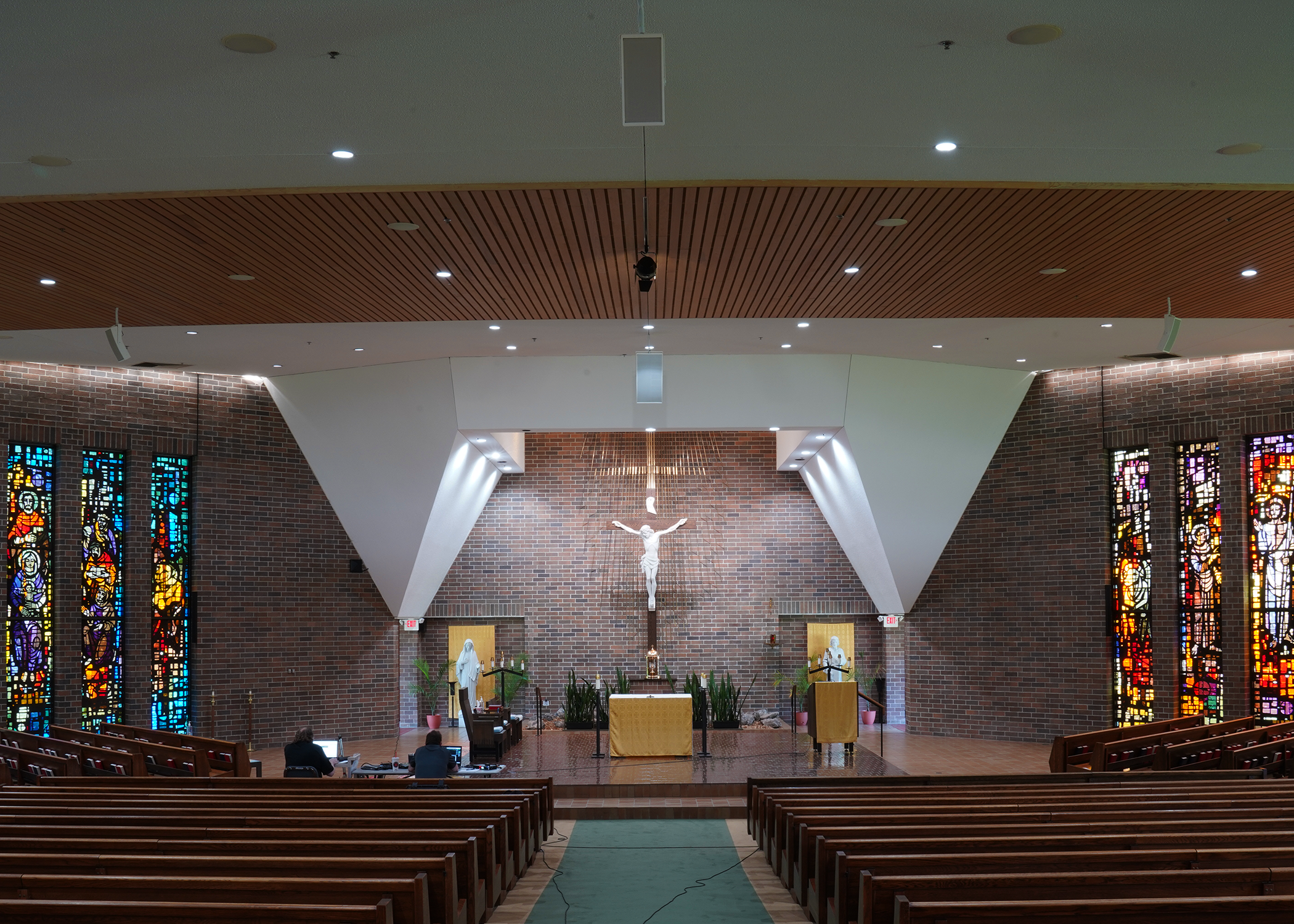 Innovox Audio was honored to be part of the rebuilding of Saint Peter’s church, a mid-century modern masterpiece by Massimo Vignelli. The church had extensive water damage and the audio system was destroyed. The loudspeaker towers were rebuilt to match the historic mid-century design, updated with Innovox components.