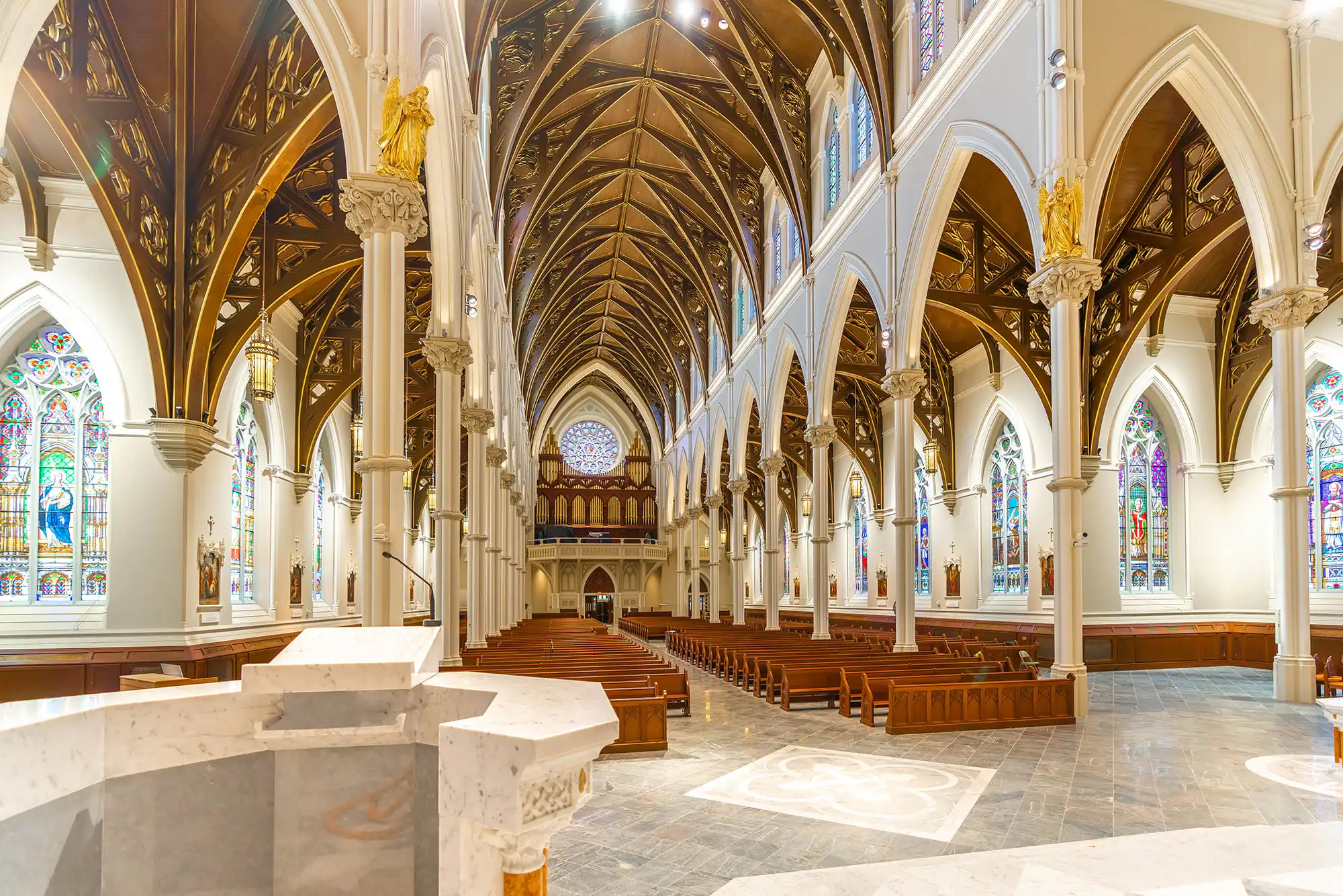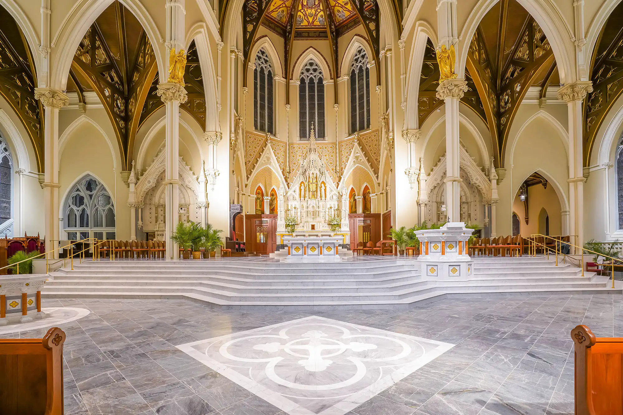 Project was a complete redo of the existing system, AVE, (Audio Video Electronics) was installer. A DLFC-CLA array combination was used behind the alter; a custom sub woofer was used and CLA’s were hung for spot fills. Aesthetic value was very important to the client, which is why they choose Innovox products.Basilica of St John, Des Moines IA