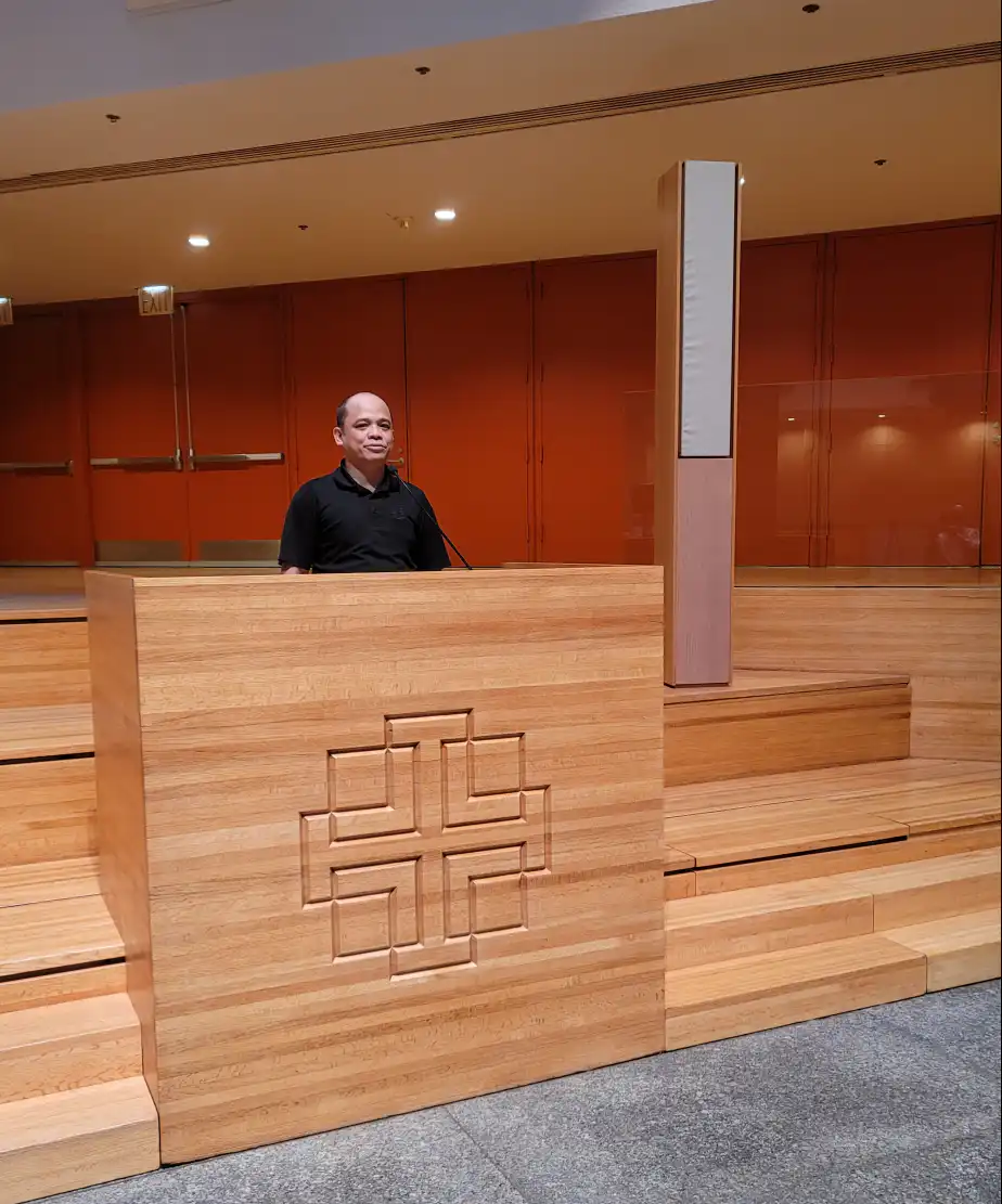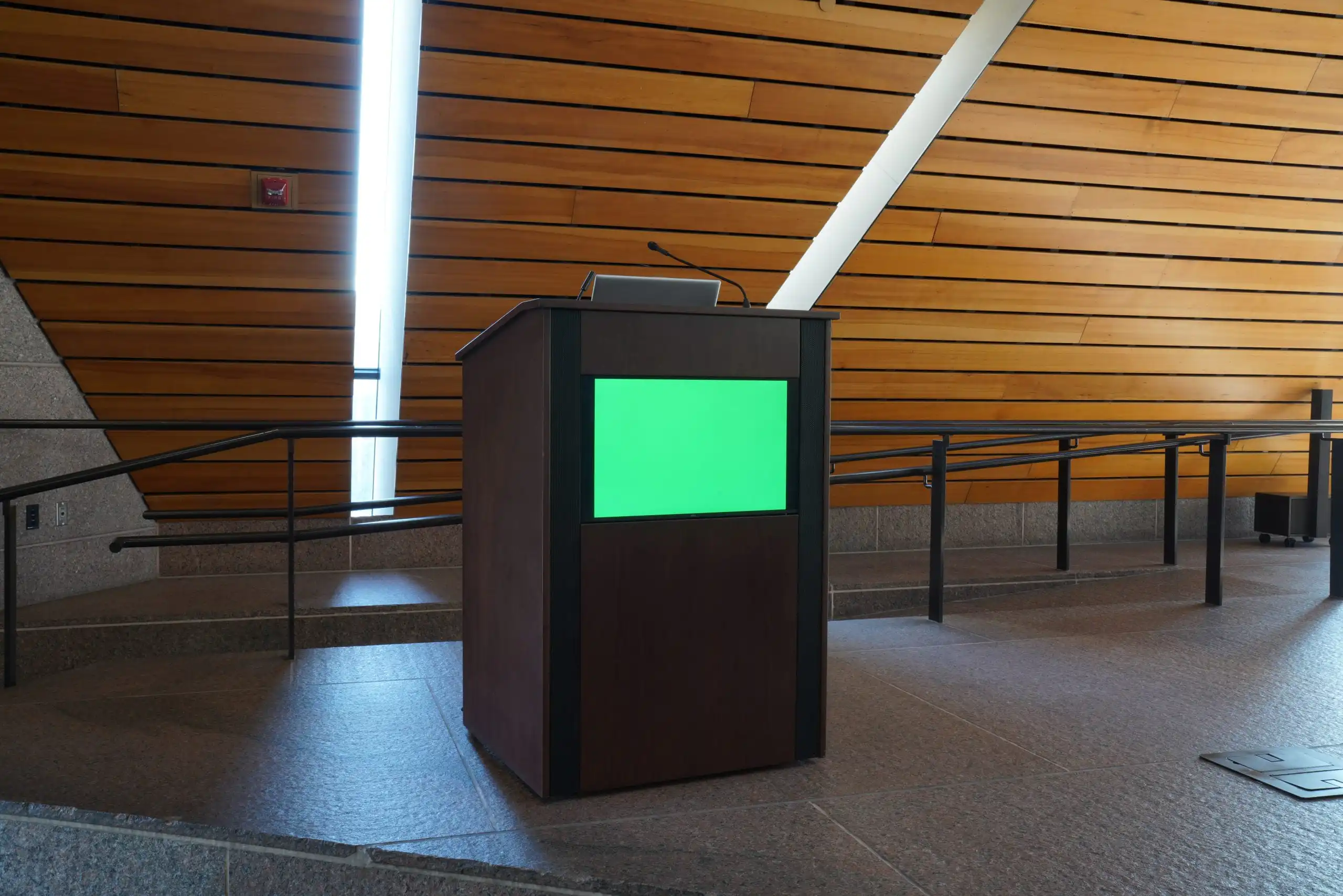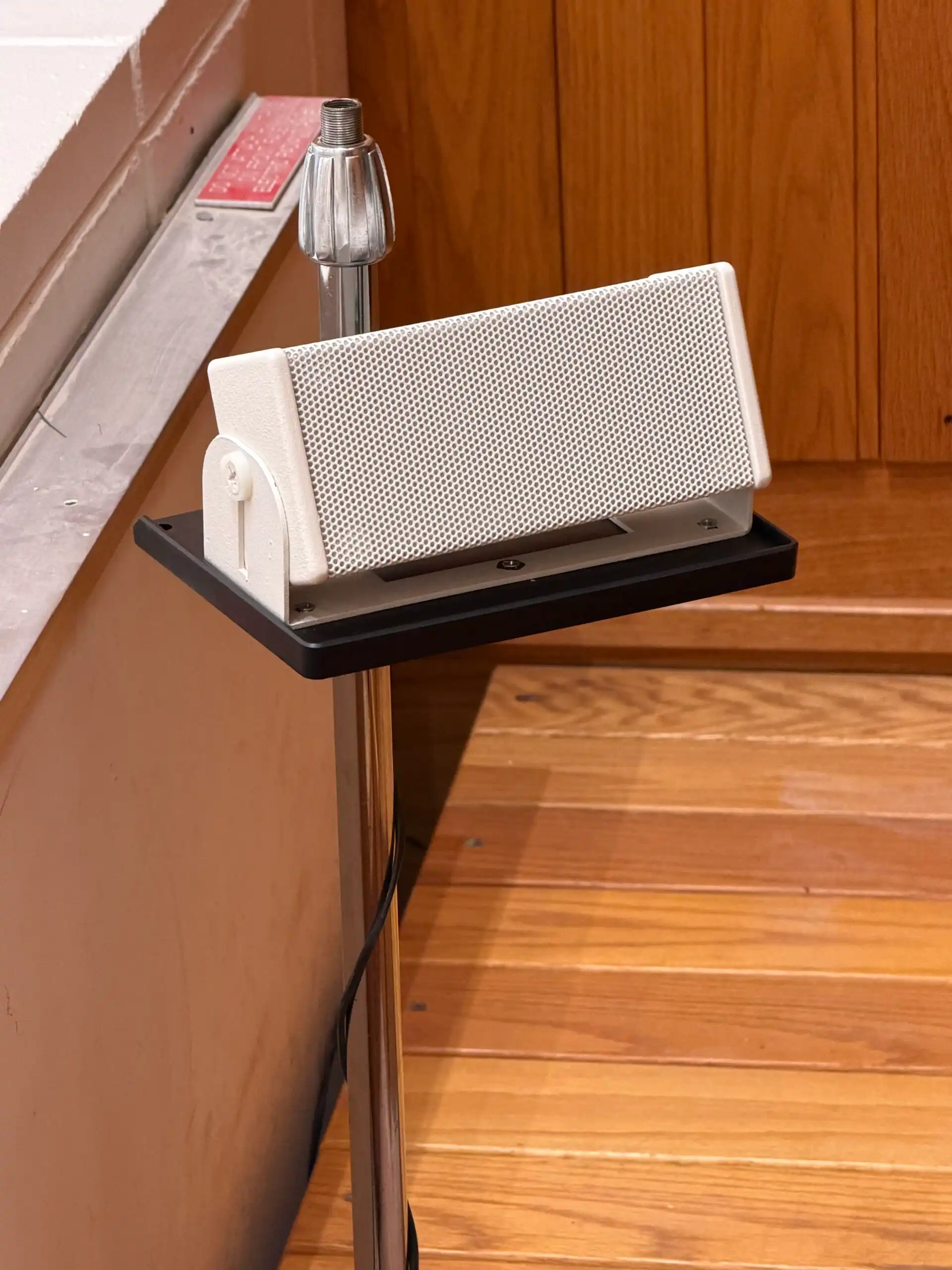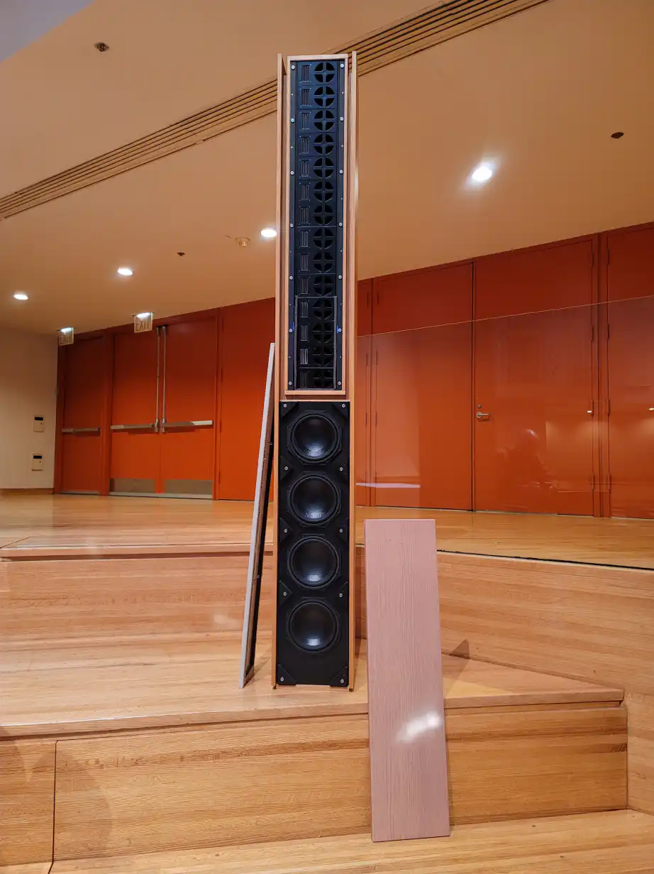 A lectern with a high performance audio system built in, custom made by Innovox for the Federal Reserve Bank. It features our SLA Micro Line Array with ribbon based tweeters and a cleverly disguised dipole spaced, slot loaded LF. And remember, it’s called a Lectern, not a Podium.