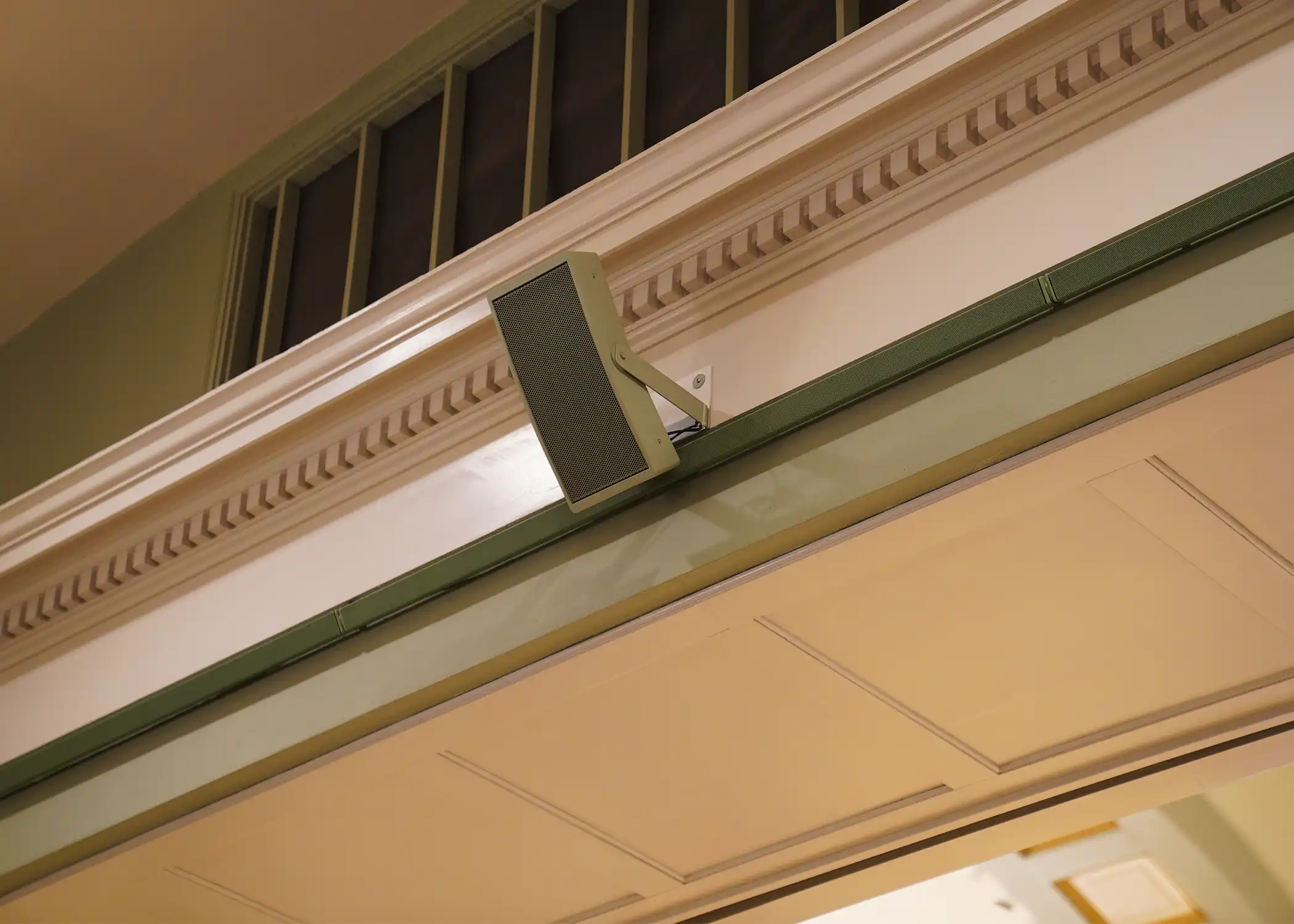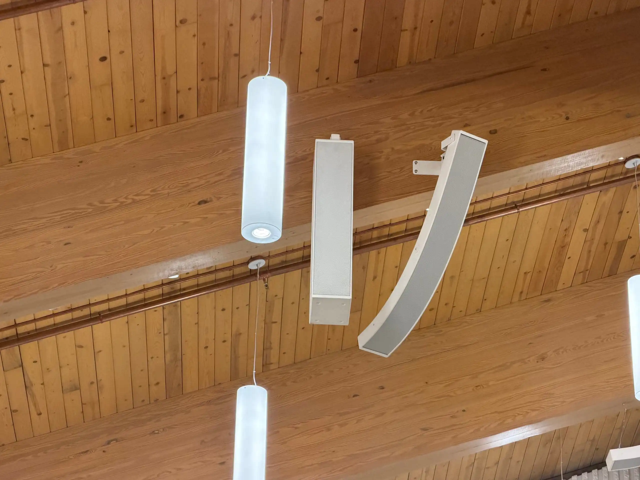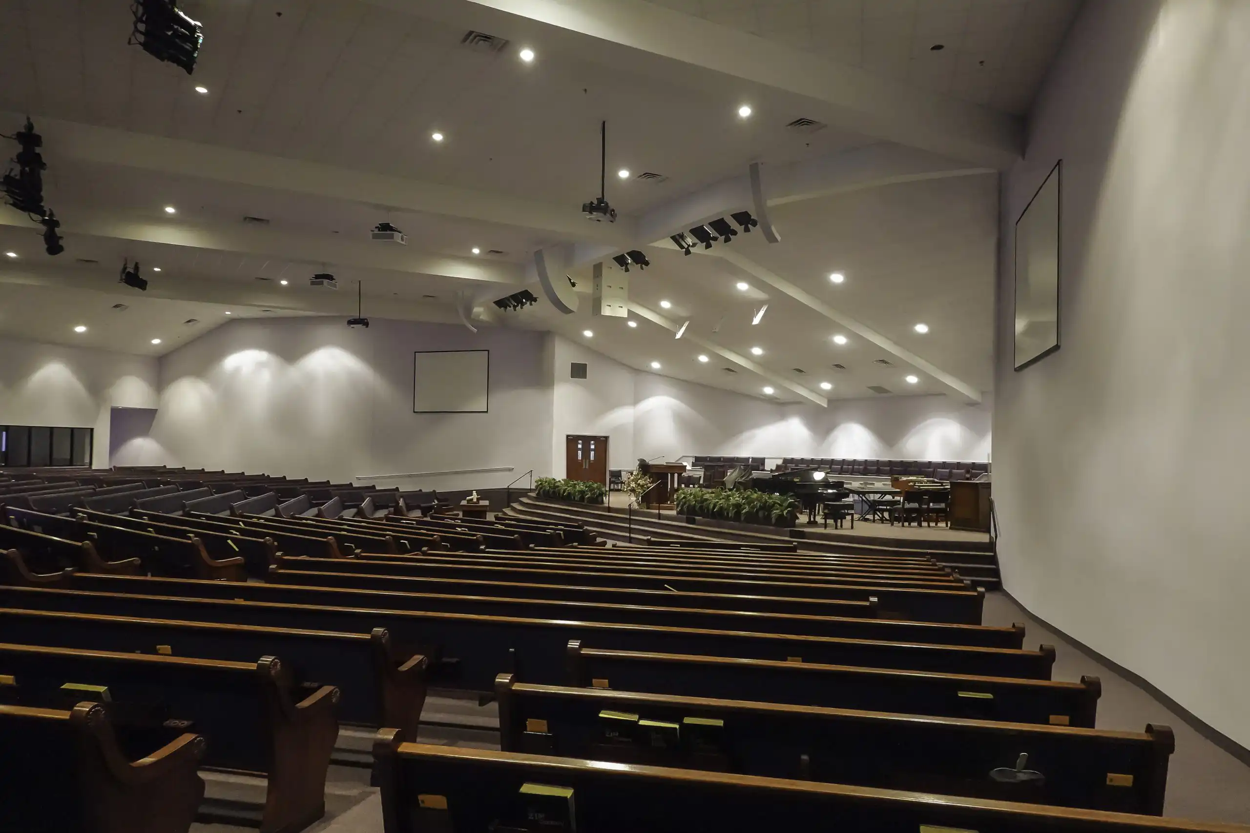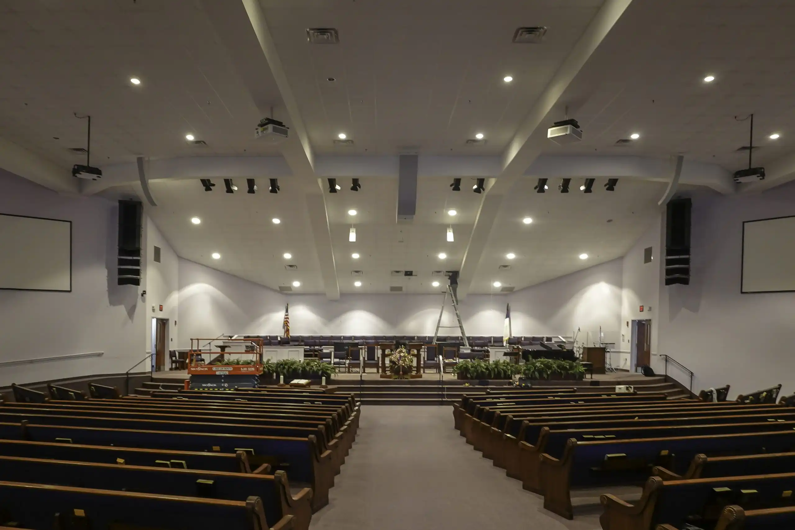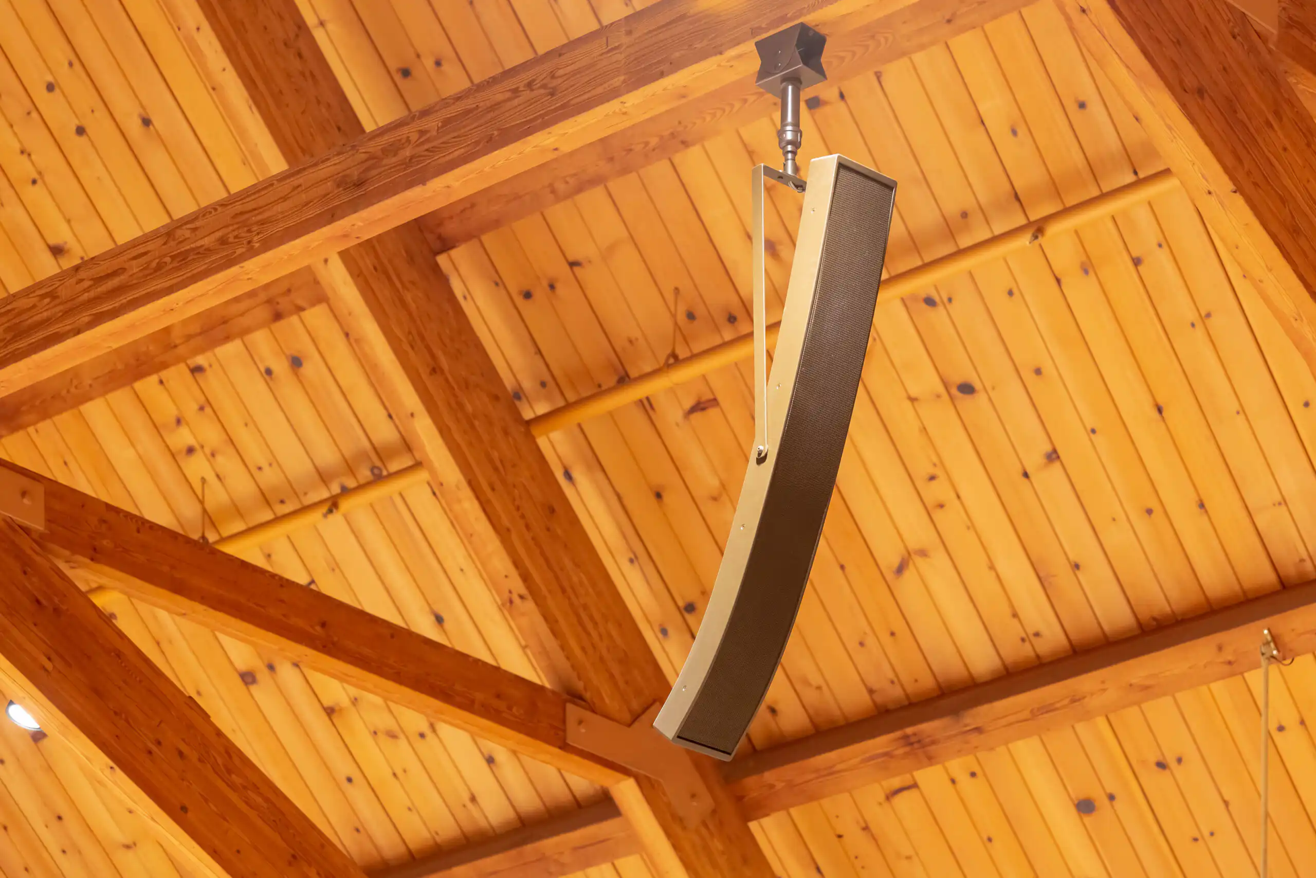 The church was experiencing poor directivity control and audio in the sanctuary was a cacophony of noise. AV contractor, Audio Video Electronics recommended complete overhaul of the sound system. Three hanging clouds of speakers were replaced by a single CLA. Microtilts were mounted on all four columns, with two facing the choir in front. Two, DLFC 604-CLA 2025 pairings were mounted on the back wall with our specifically engineered, metal mounts.