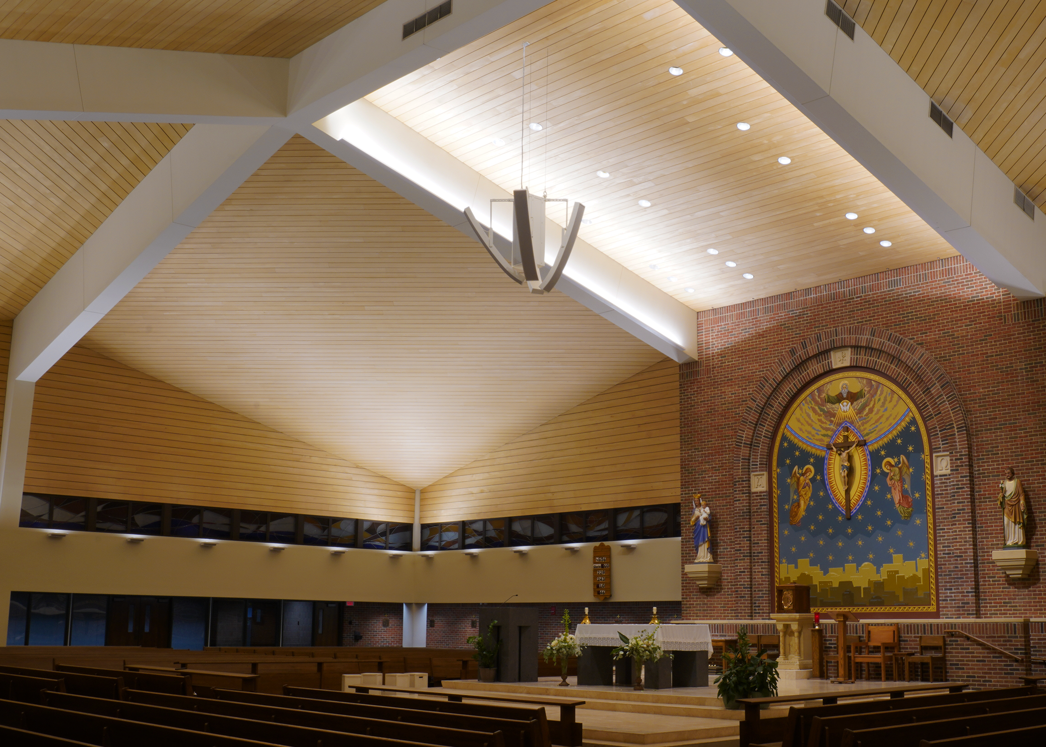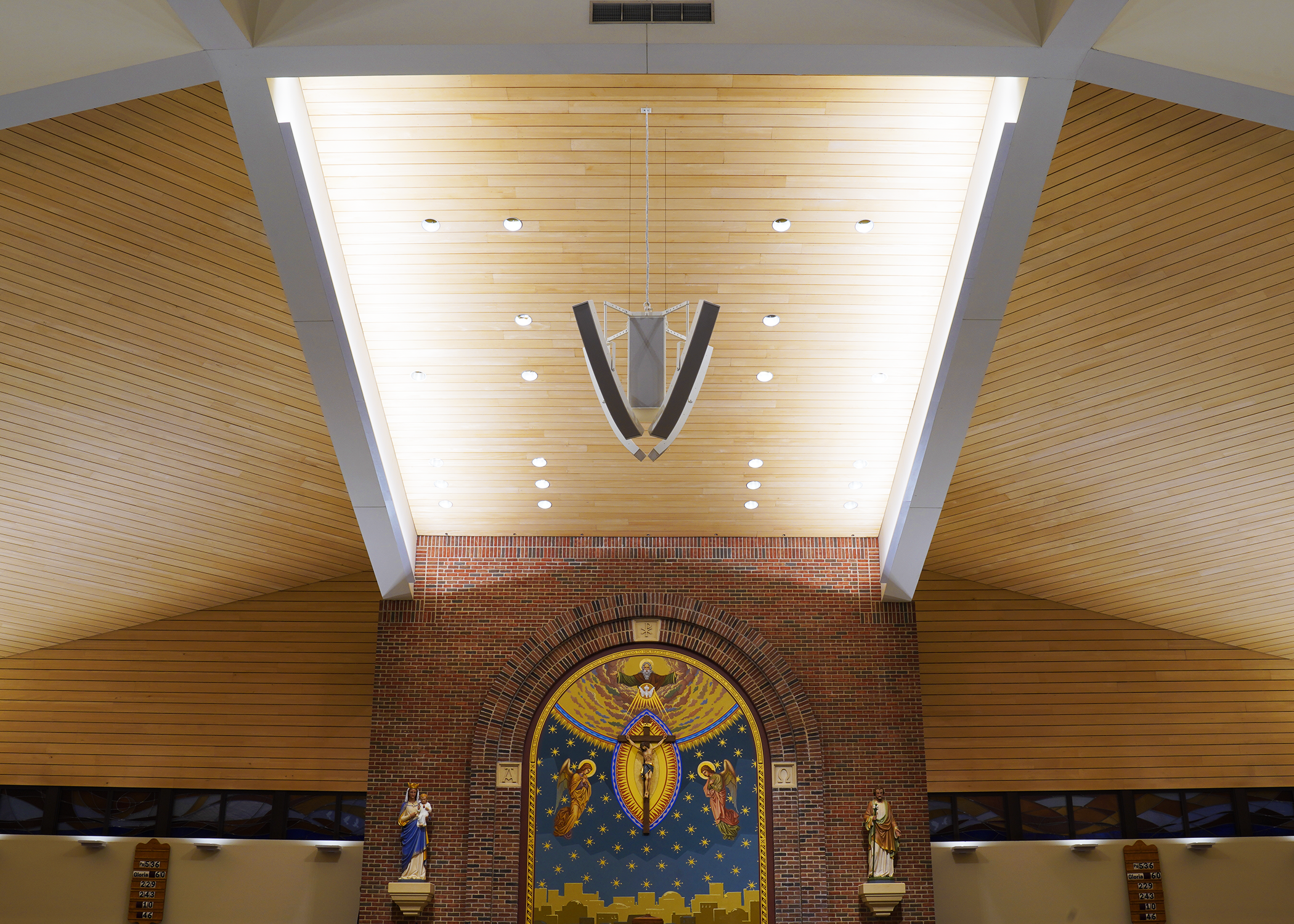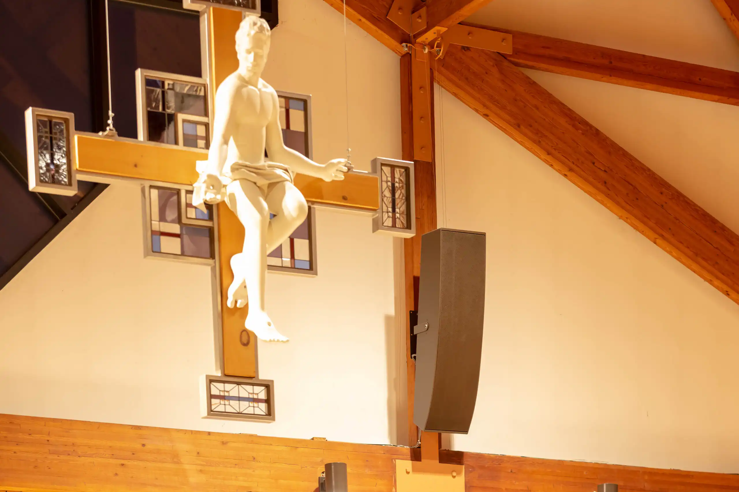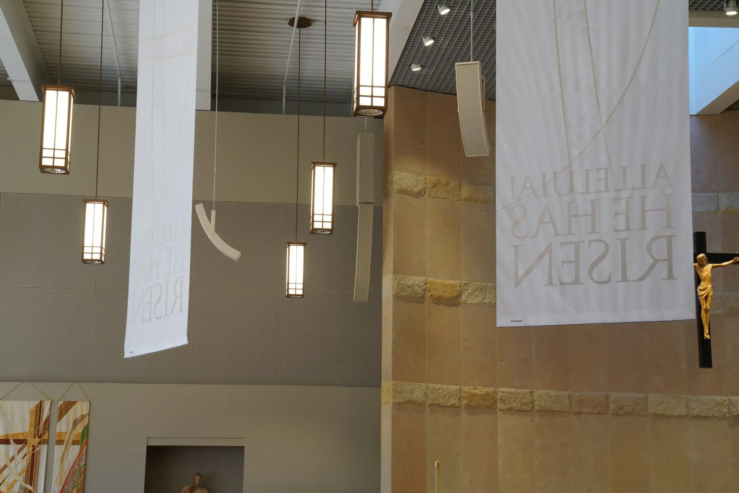 Project was a complete redo of the existing system, AVE, (Audio Video Electronics) was installer. System went from hidden ceiling speakers to Innovox hanging and mounted speakers. Two – DLFC-CLA anchor clusters mounted on back wall of sanctuary; six – CLA-9 articulation speakers hug from ceiling, (2 for the wings, 2 for the back, 2 for the choir). Major improvement for clear audio in all regions of this large sanctuary.St Therese, Deephaven MN