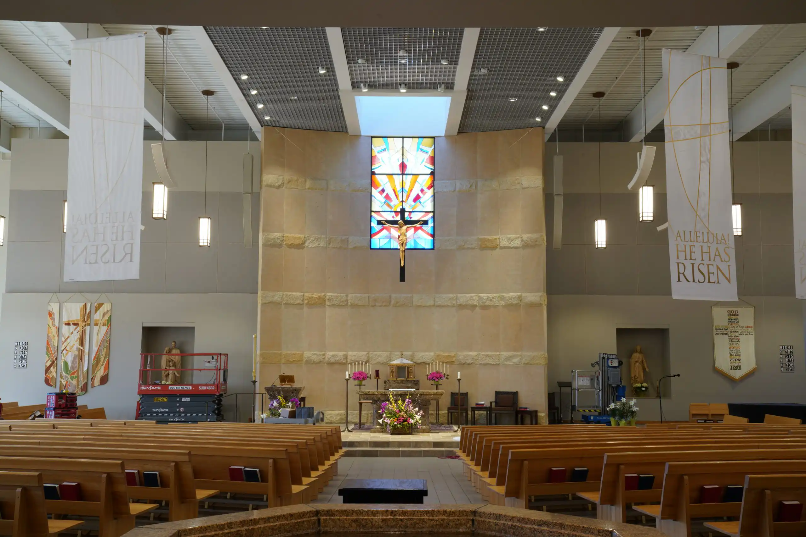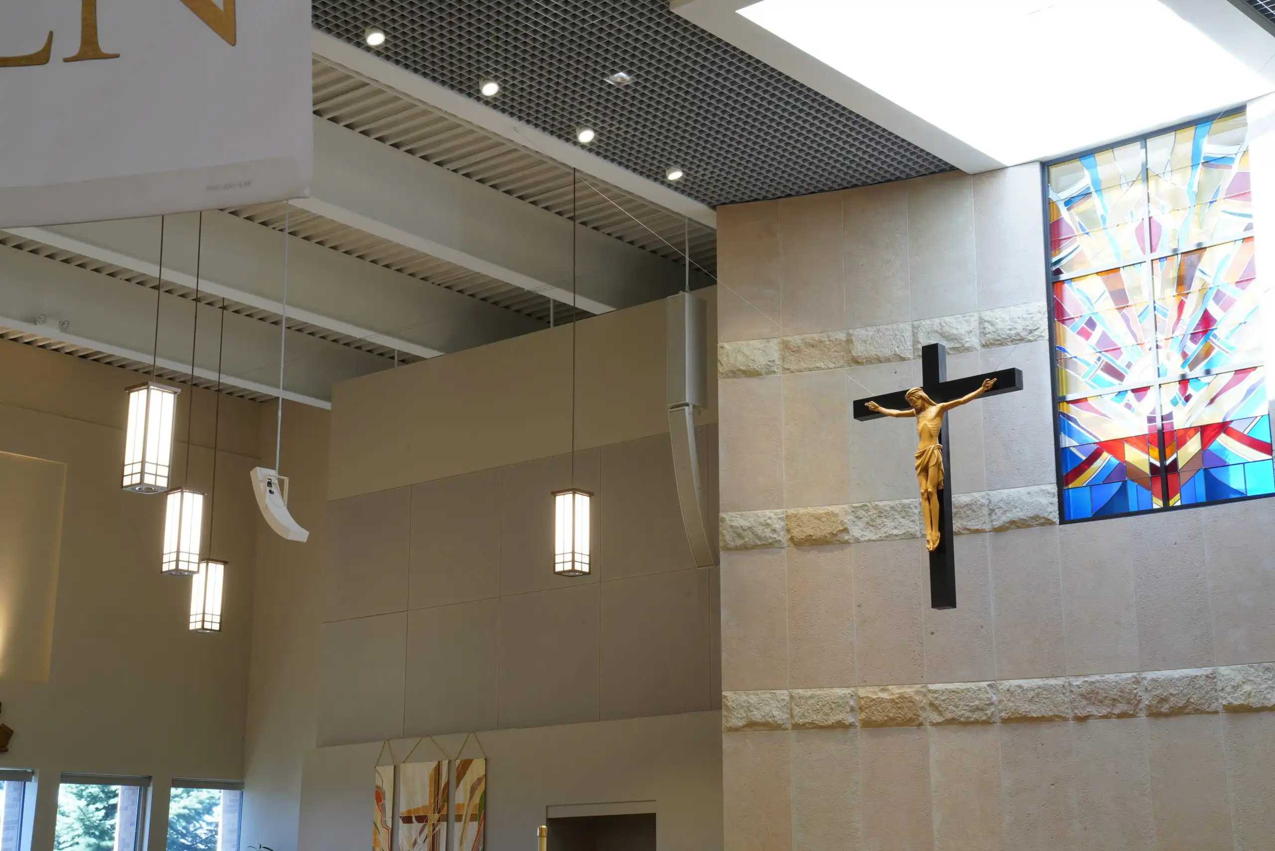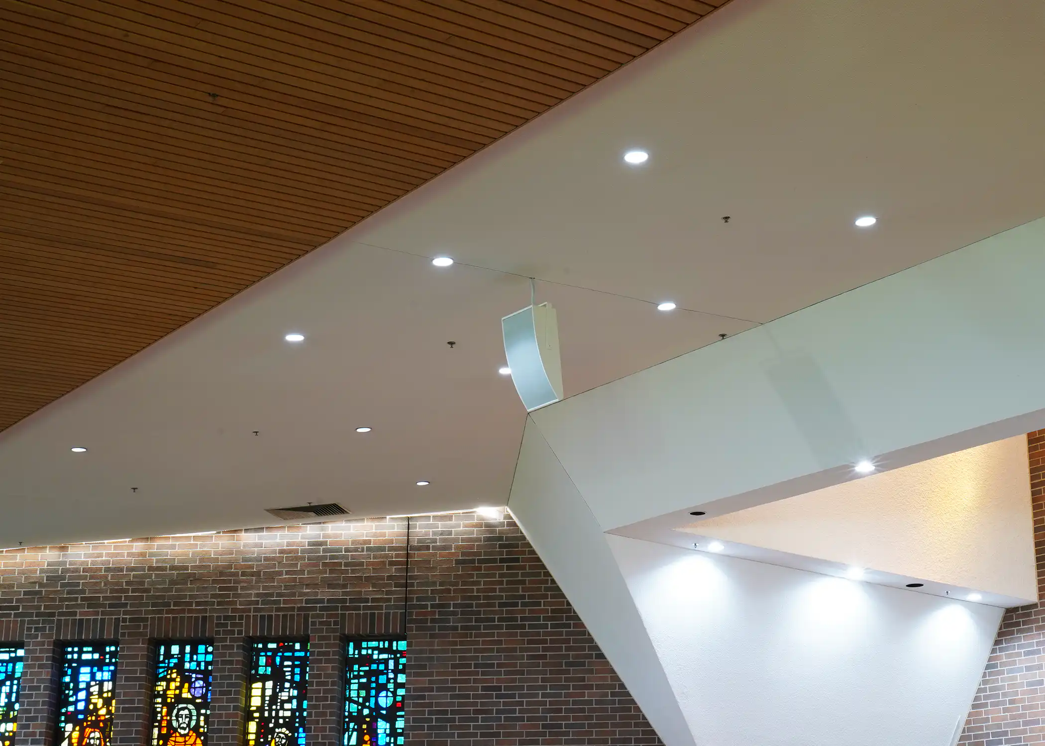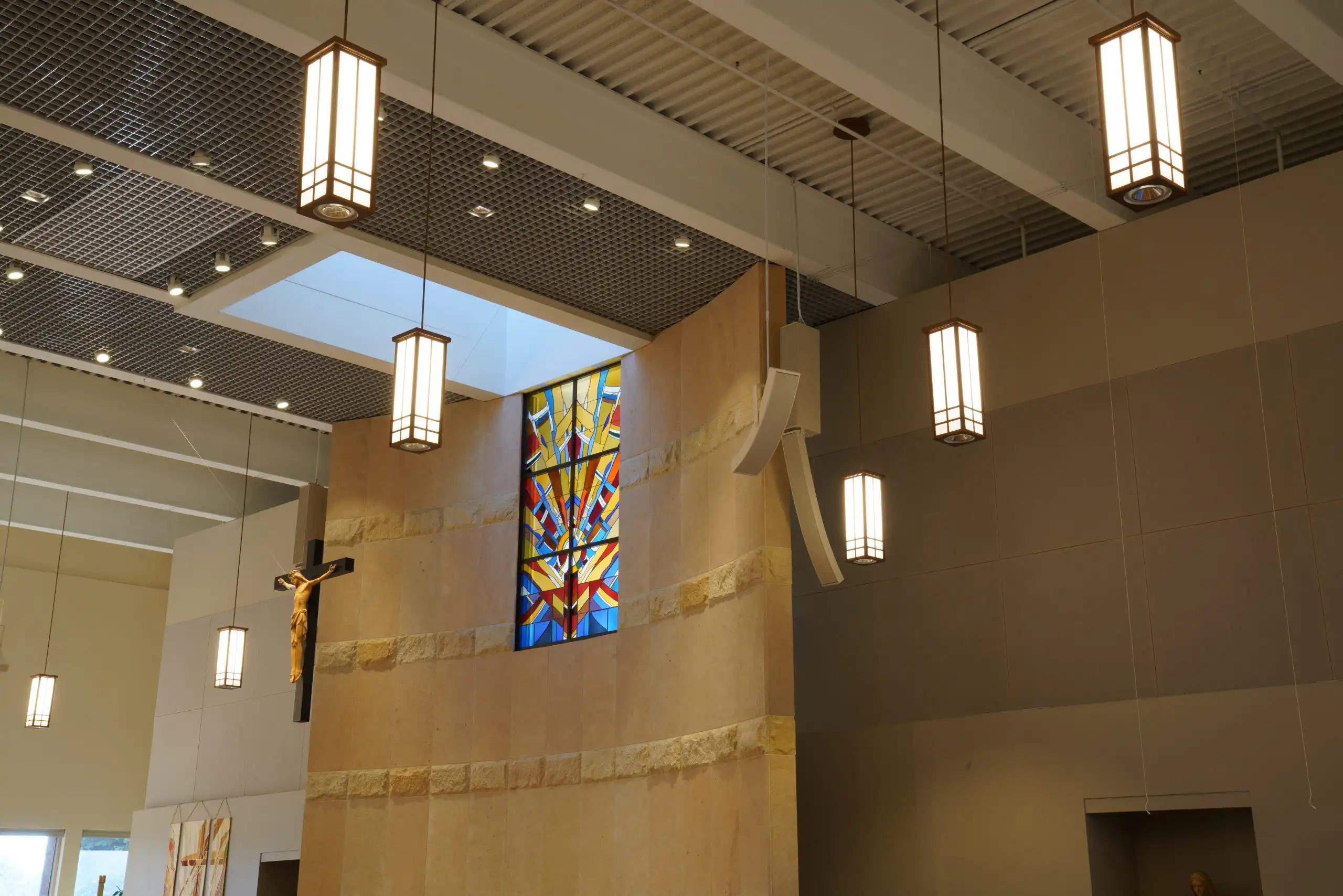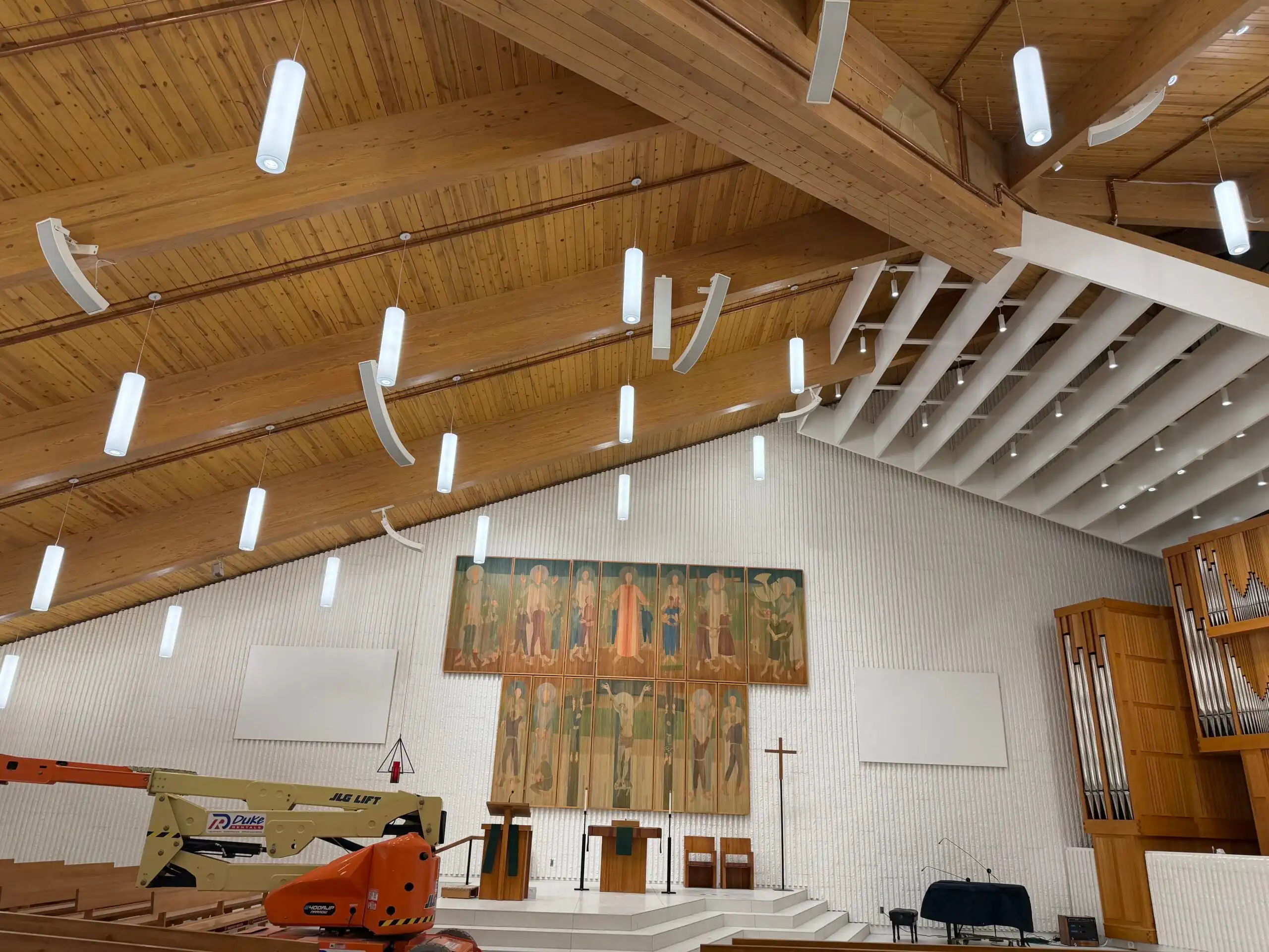 Project was a complete redo of the existing system, AVE, (Audio Video Electronics) was installer. System went from hidden ceiling speakers to Innovox hanging and mounted speakers. Two – DLFC-CLA anchor clusters mounted on back wall of sanctuary; six – CLA-9 articulation speakers hug from ceiling, (2 for the wings, 2 for the back, 2 for the choir). Major improvement for clear audio in all regions of this large sanctuary.St Therese, Deephaven MN