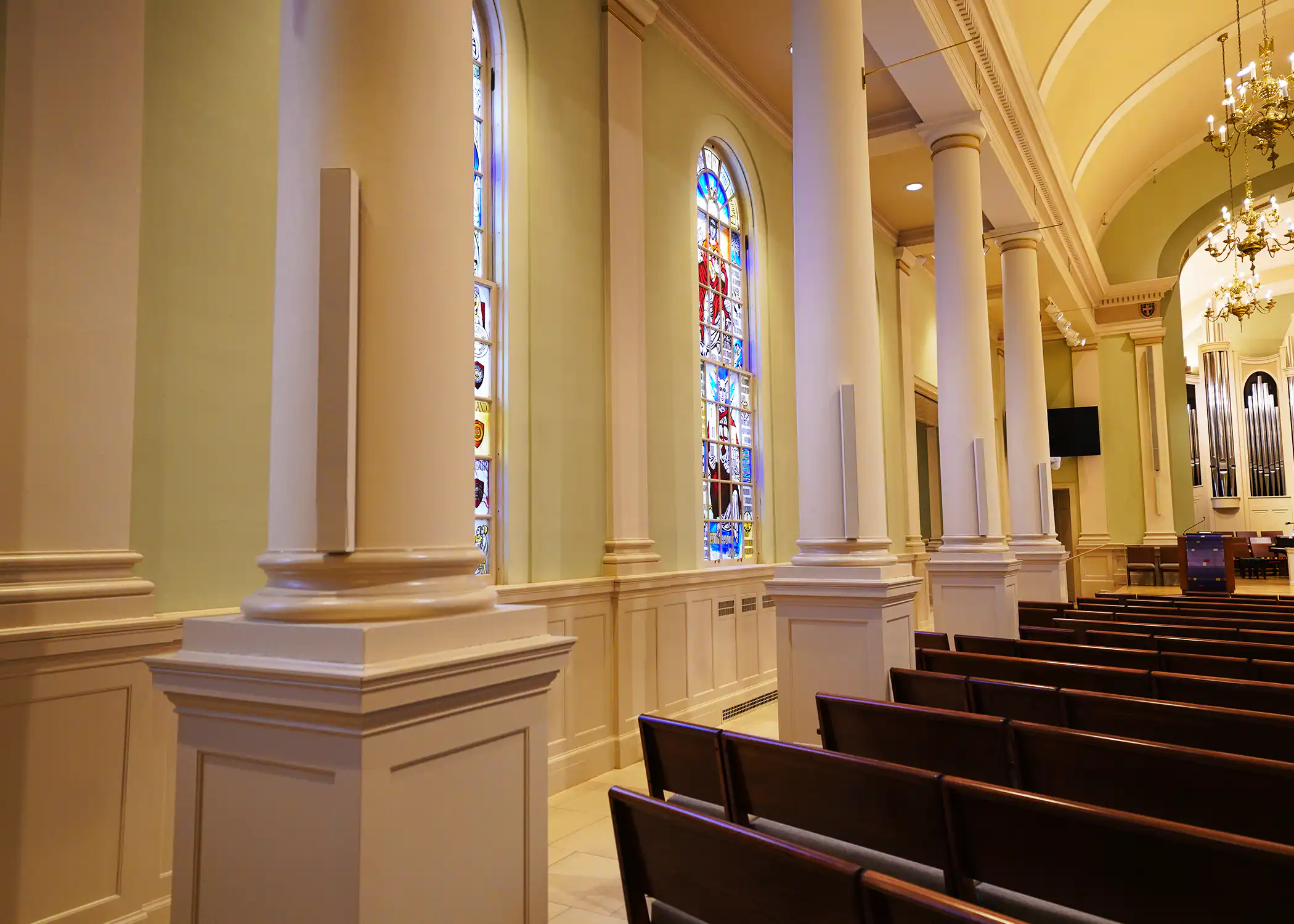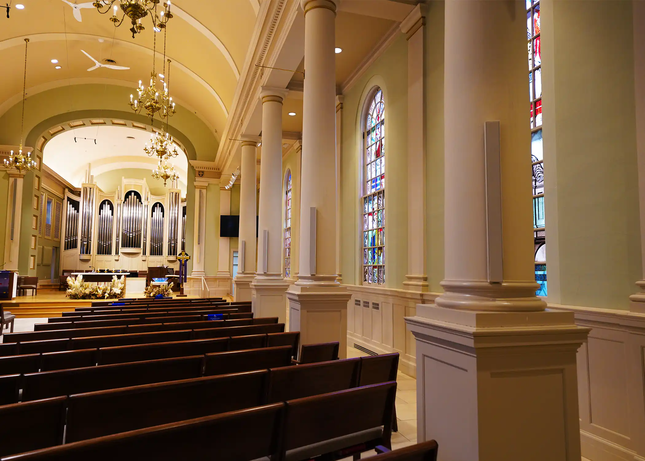 The church was having issues with speech clarity as well as even coverage in the sanctuary. AVE electronics installed an Innovox sound system which significantly improved articulation and intelligibility throughout the entire space. The page link below does an excellent job of describing the process:
