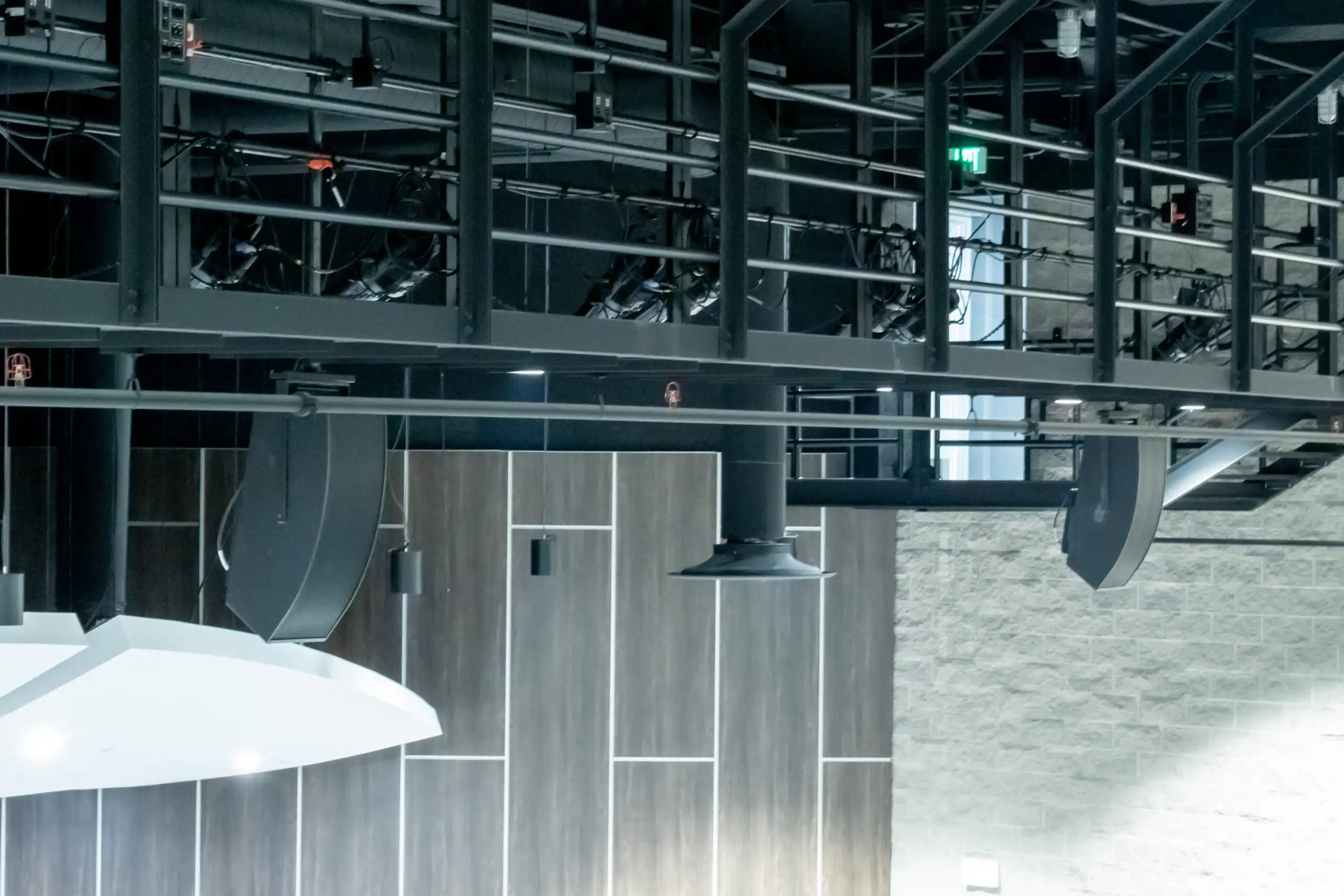 AVE (Audio Video Electronics) performed a new audio system install in the basement of the church. The basement was a large, underutilized area used mainly for storage. The church decided to renovate the space and add an audio visual system. Innovox built a custom sized Synergy at the front of the hall as a sound anchor. Because the room is long, and has brick walls, it presented challenges, especially due to the parabolic ceiling structure. Micromonitors were used at several stages along the length of the room for fill and clarity. Directionality was important to the client, which is why Innovox works hard to locate the sound at the source.